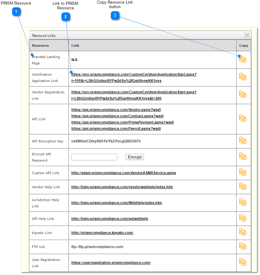 These links are to the PRISM production or stage environment API (depending if you are on stage or production).