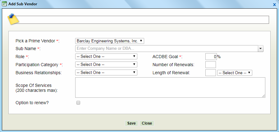 Note: After entering the Agreement Number, click the green check mark to verify that this number is not being used already. If it is, PRISM will pre-populate the remaining fields with known information about the agreement.