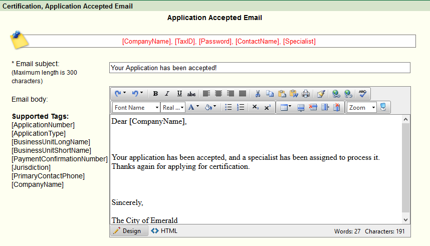 Navigation: Reference Manual > The PRISM Modules > Certification > Configuration > Application Accepted Email |