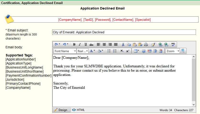 Navigation: Reference Manual > The PRISM Modules > Certification > Configuration > Application Declined Email |