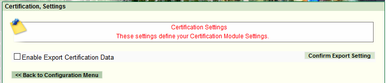 Navigation: Reference Manual > The PRISM Modules > Certification > Configuration > Settings |
