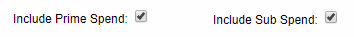 Toggling these filters will list prime-only, sub-only, or prime and sub spend. Note: when showing prime and sub spend, the 'Total' (botton of table) is not calculated |