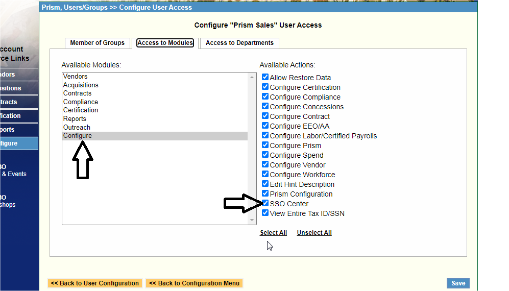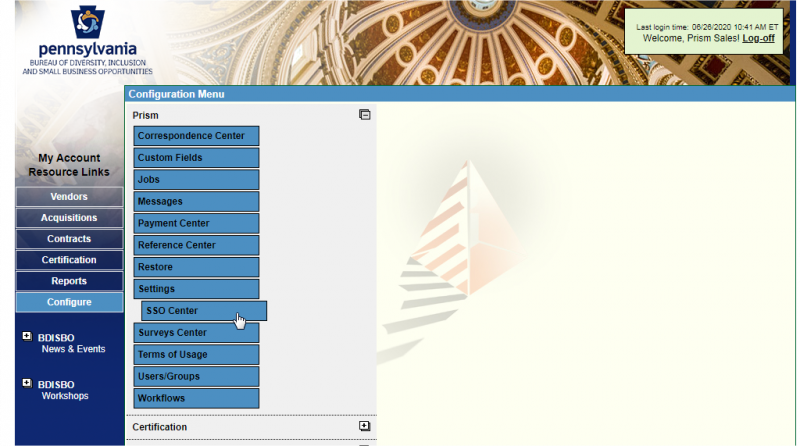 The PRISM configuration for SSO consists of two parts. The first part must be performed by the IT department. It consists of configuring the identity provider. The second part, much easier, consist of configuring PRISM SSO settings. This configuration, can be done within PRISM. The scope of this help is for configuring PRISM SSO settings.
