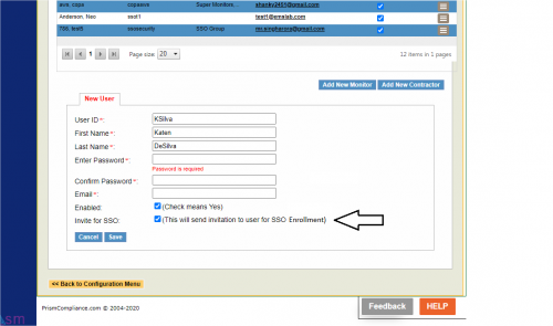An invitation can also be sent while adding a new monitor to PRISM. Note the "Invite for SSO" check box.