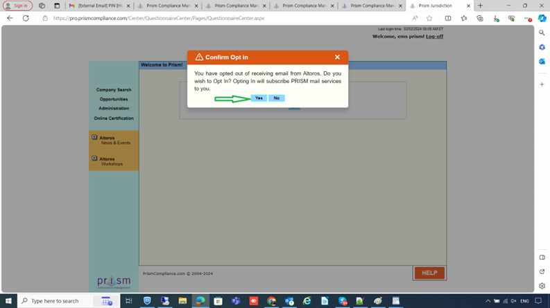 1.If the vendor selects “Yes,” the vendor will receive an email message confirming the opt-in decision.
