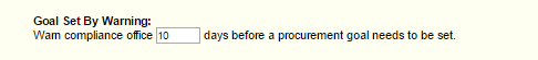 Any procurement with a Goal Set by Date that is less than N number of days away will be associated with the Goals Warning Quick Filter List.