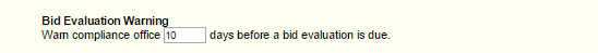 Any procurement that requires a Bid Evaluation within the next N days will be associated with the Bid Evaluation Warning Quick Filter List.