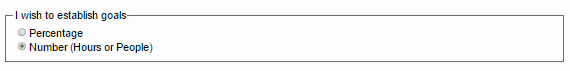 This option determines if the goal will be determined based on the number of people or the percentage of people. For example, if Staff Summary was selected above, should the goal be a percentage 12% or number of people 350. How will the goal be measured?