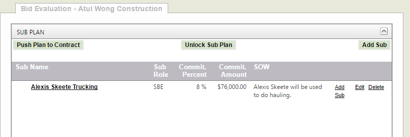 This feature allows the monitor to copy the winning bidder's subcontractor utilization plan to the resulting contract. This has many benefits: