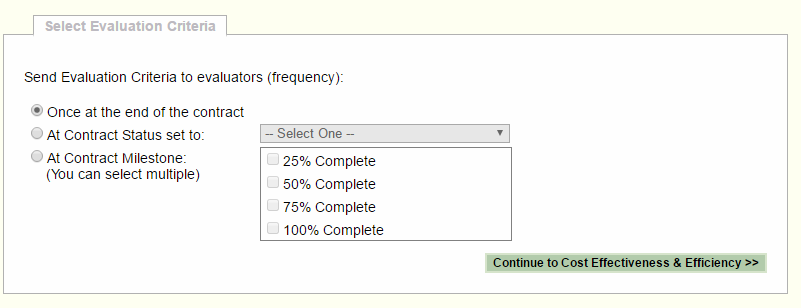 1.When the evaluation will take place (contract completion milestones, end of contract)