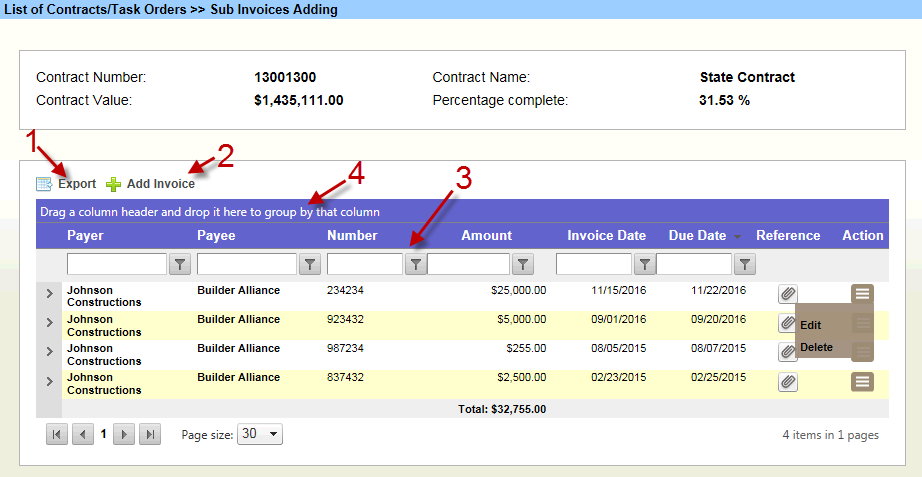 You will only be able to view the invoices that are applicable to you. If, however, you are a prime on the contract, you may see all of the invoices, regardless of the tier.