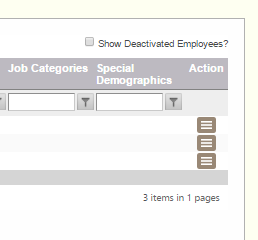 1.From the employee profile listing, select Deactivate Employee from the small hamburger menu. This selection will deactivate the targeted employee only