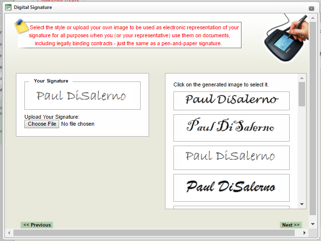 6.You may upload an image of your signature or select an avatar from the right of the above screen. this is not your digital signature but will be used to indicated that you applied your digital signature.