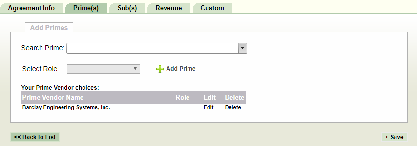 Adding an agreement consists of several steps. PRISM will guide you step by step through the process. The process begins with adding the agreement profile information. Adding concessions prime contractors to the agreement is next followed by adding concession subcontractors. Finally, the entered data is confirmed and the agreement is in place.