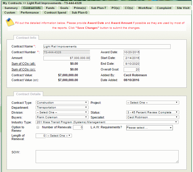 1.General Contract Information (Award Amount, Date, Start Date, Industry, Specialist, etc.)