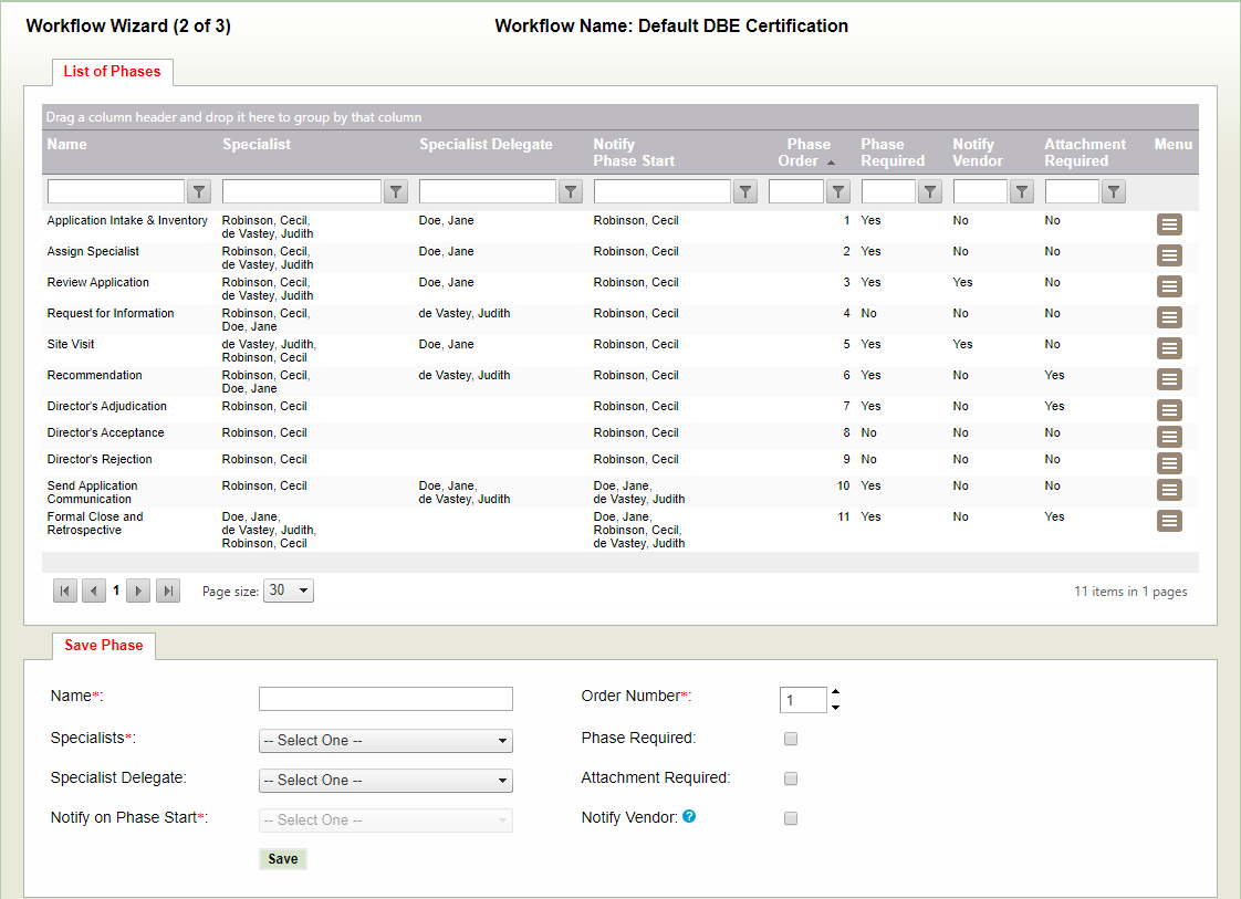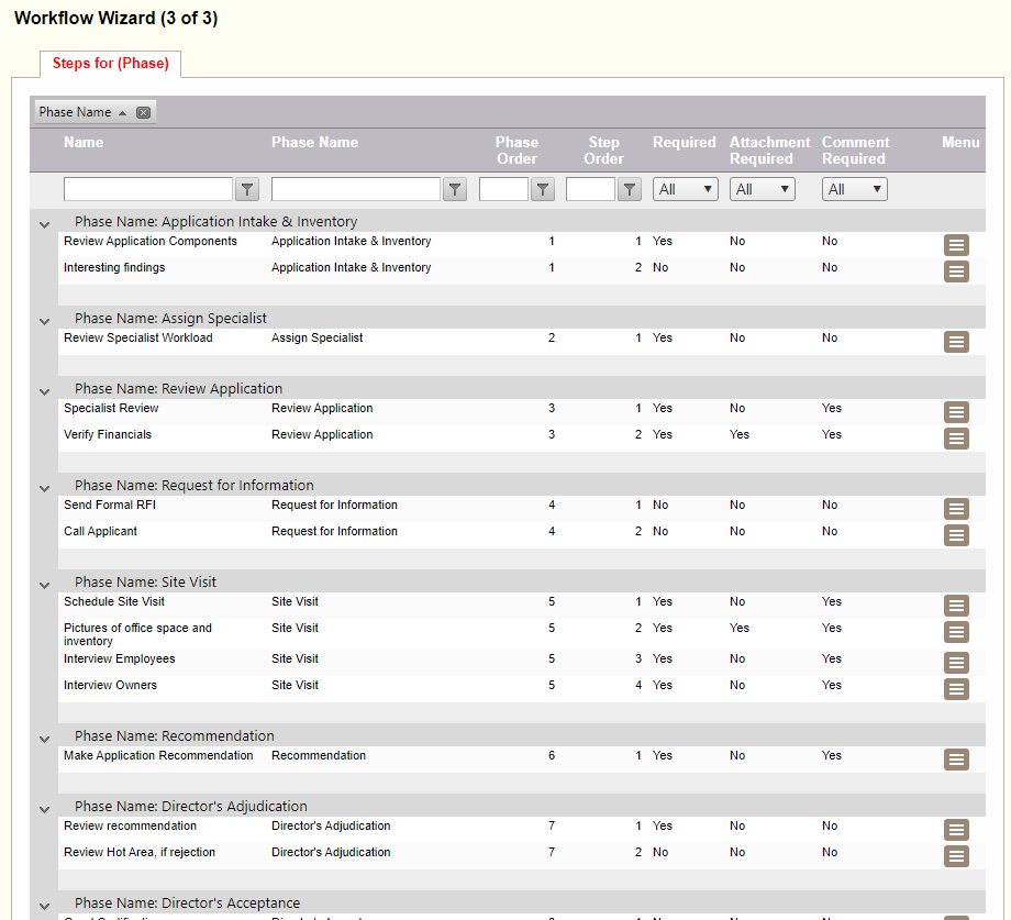 As steps are added to the phases, the list (below) will populate with the workflow. Its taking shape!