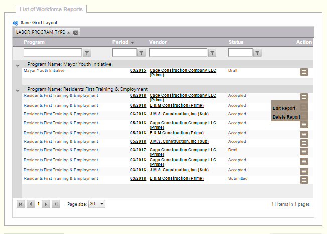 Deleting a Workforce Report is accomplished from the Workforce listing. The small hamburger menu has the option of deleting the report.