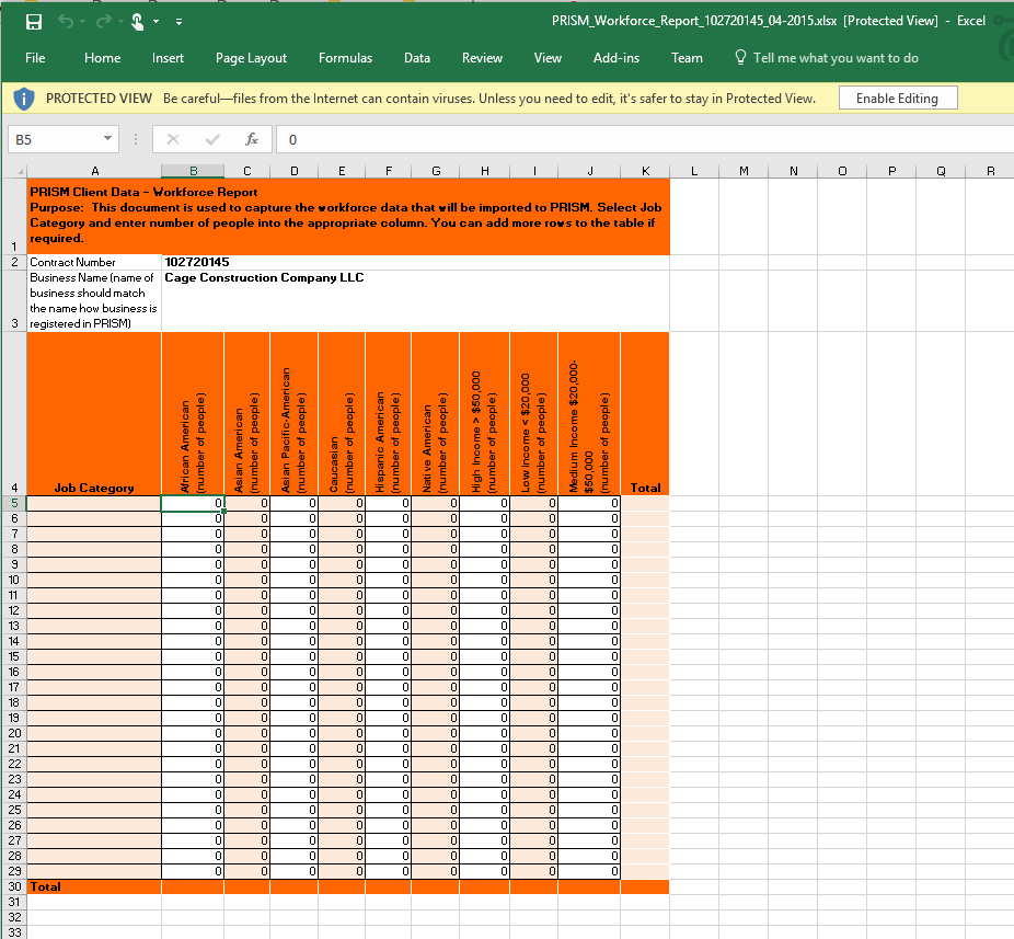 7Complete the Workforce template (be sure to enable editing of the MS Excel spreadsheet)