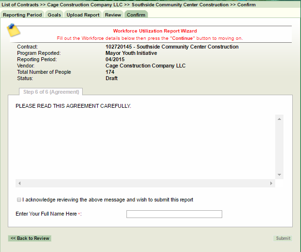 9Click "Continue to Review" to view the uploaded Workforce Report. You may also add additional report data.