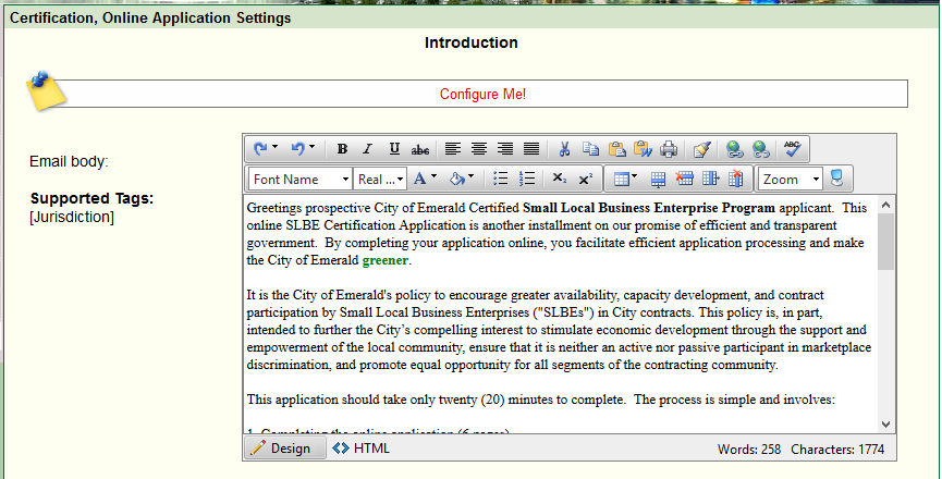 Introduction: This message is used to configure the introduction section of your online application.