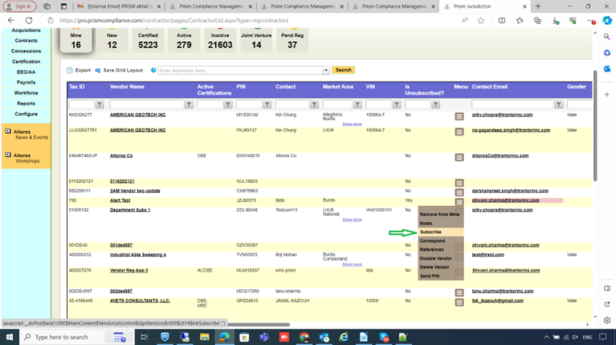 4.PRISM will send the vendor an email with an embedded subscribe link