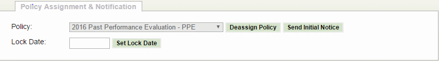 Contracts that will have performance evaluated will require an evaluation policy assigned to the contract.  This is simple because the policies have already been configured.  The Contracts Performance tab provides the means to assign a policy to a contract.