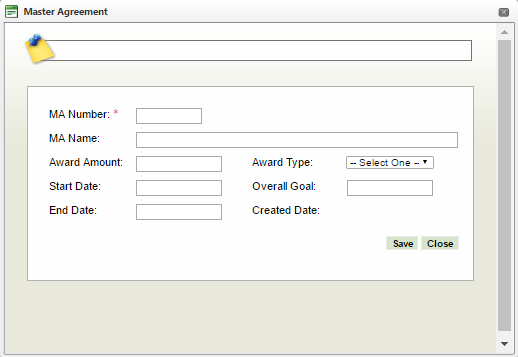 Navigation: Reference Manual > The PRISM Modules > Contracts > Managing Contracts > Master Agreements |