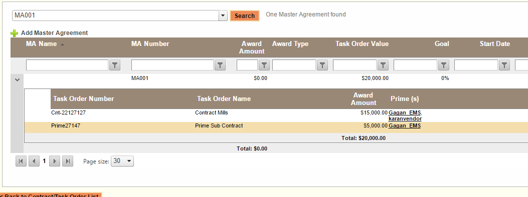 3.Since a TO is technically a contract, each TO in the MA has it's own set of Goal, Funds, Primes, Subs, COs, etc.